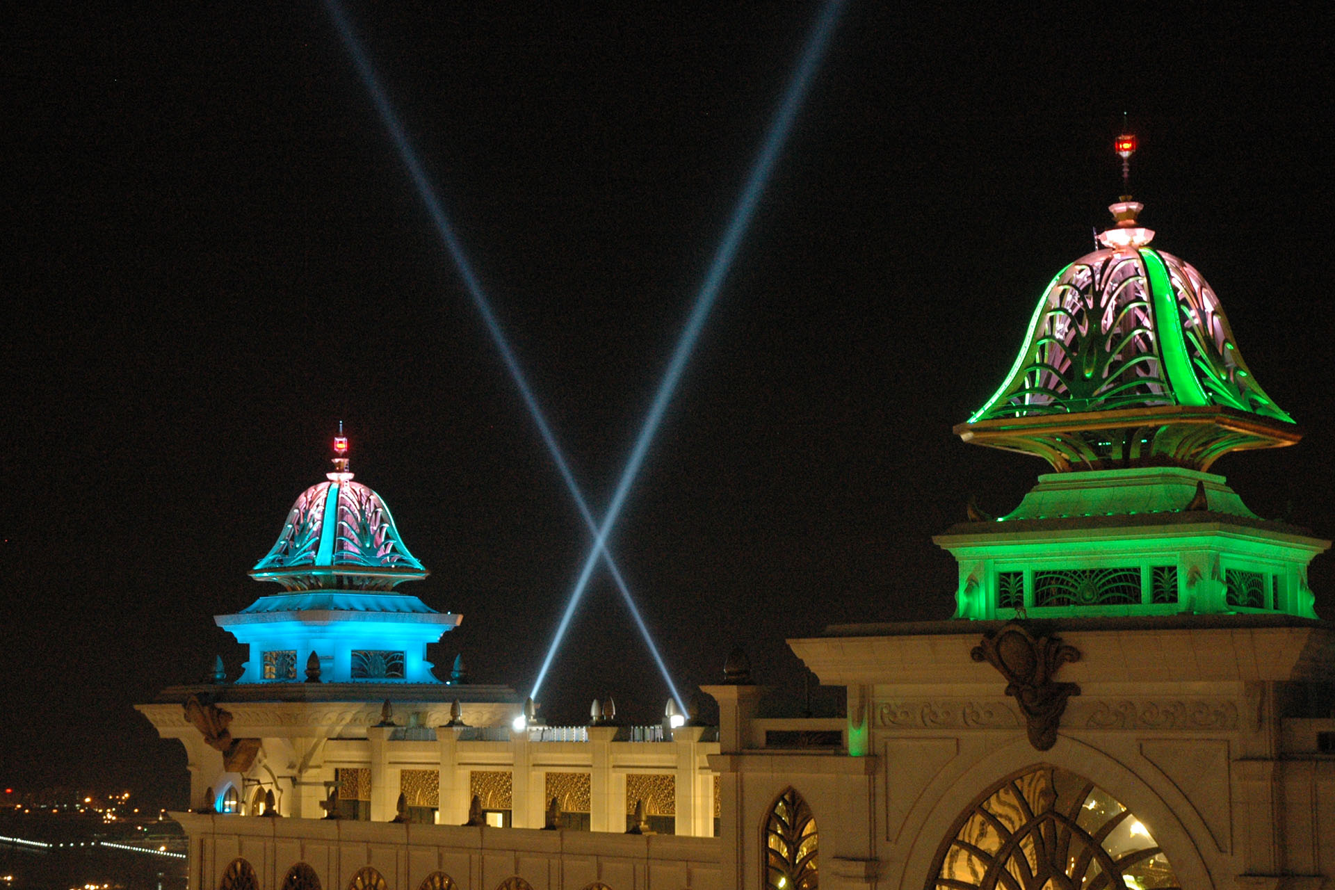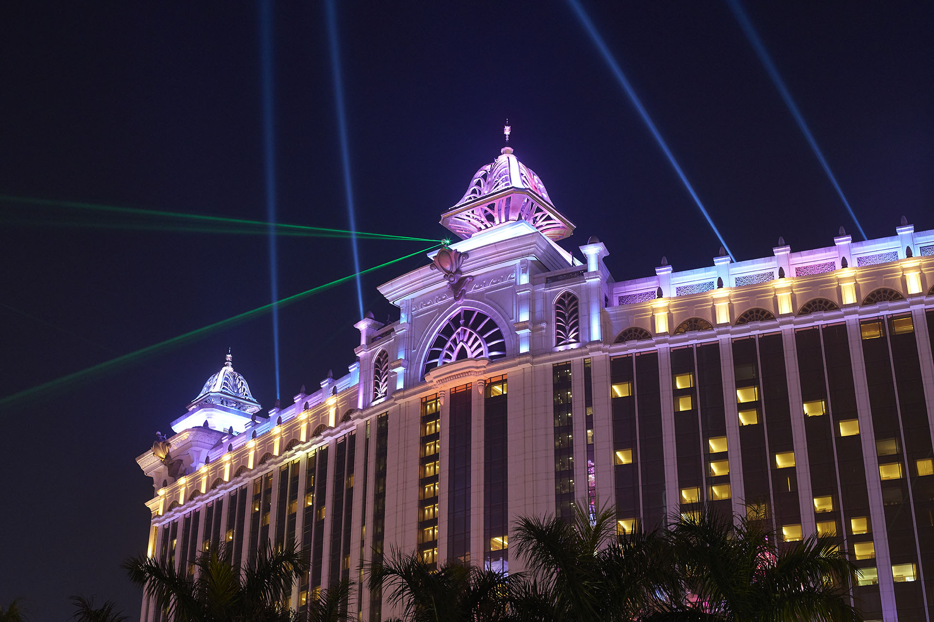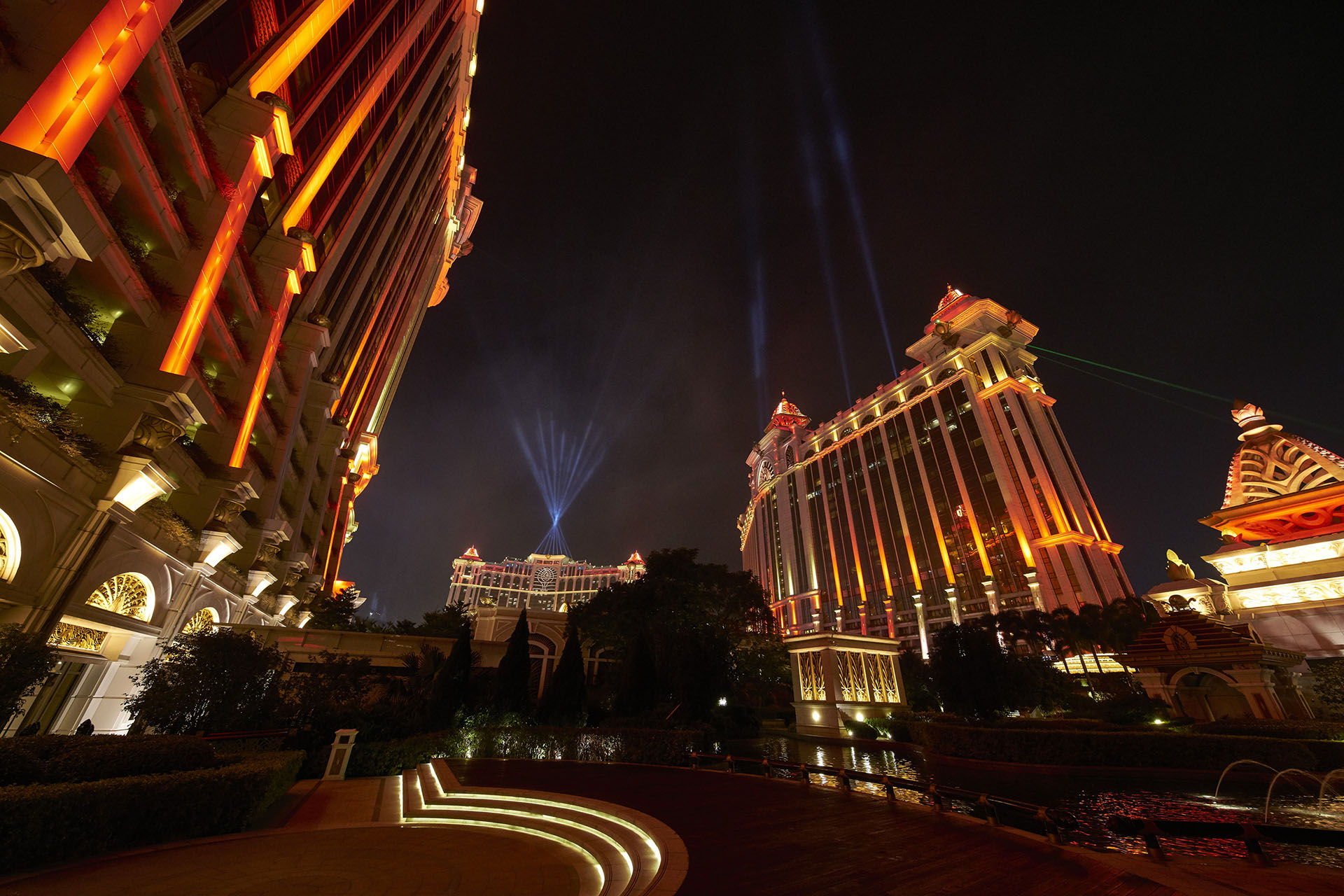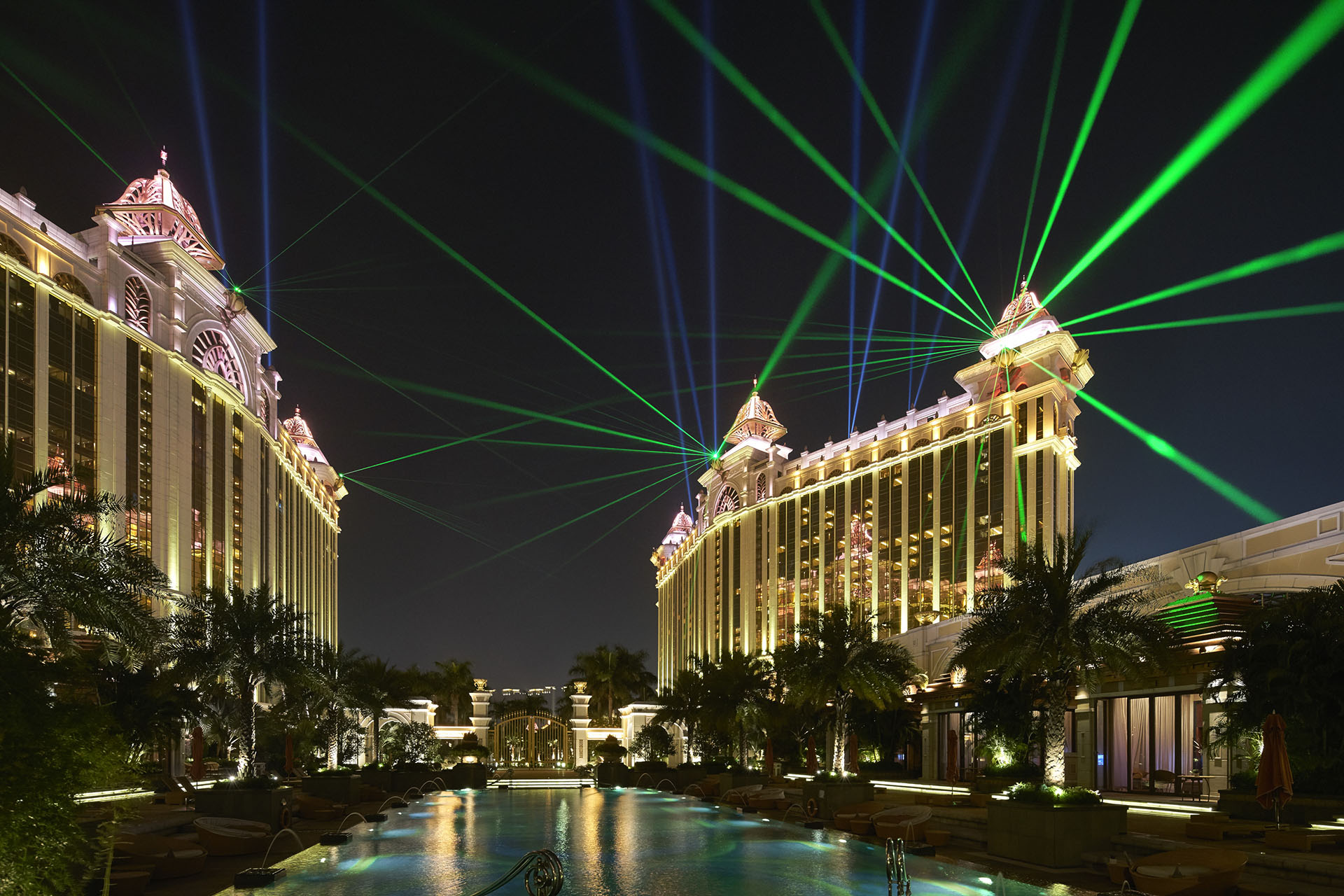 One of the features at Galaxy Macau, since opening in 2011, has been it's laser show. The show originated on the two phase one towers with six high powered lasers and eight searchlights.